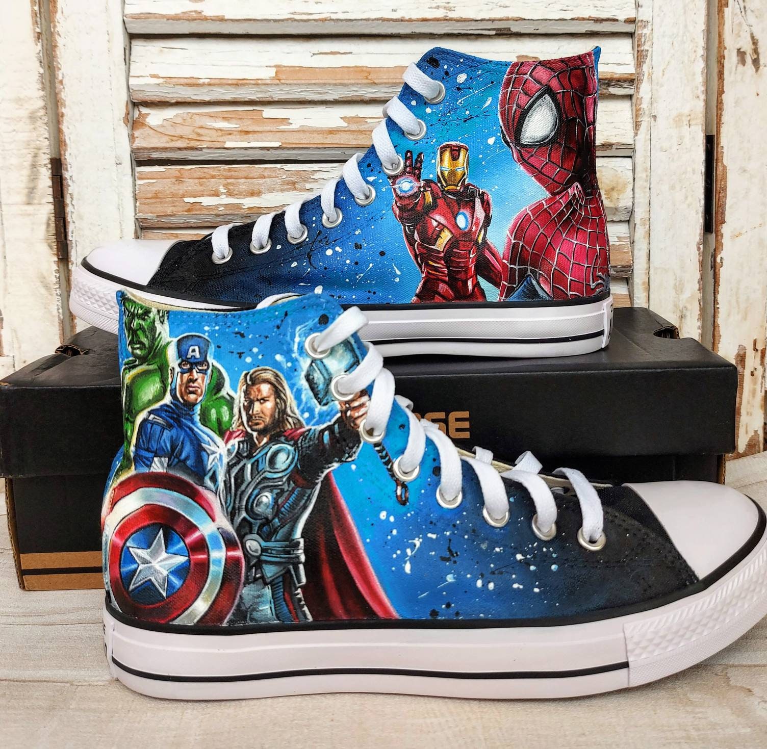 Marvel Superheroessuperhero Shoescustom Shoeshand Painted Etsy Uk